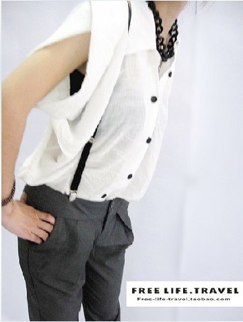 白色路肩T恤和黑色小背心搭配,清爽的搭配同样可以很出色。