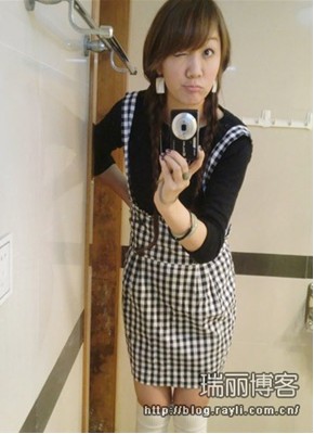 黑色格子的短裙,很显腰身,春天开始要减肥了,要不肉肉藏不住