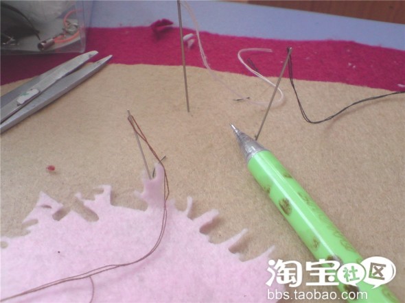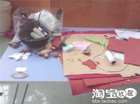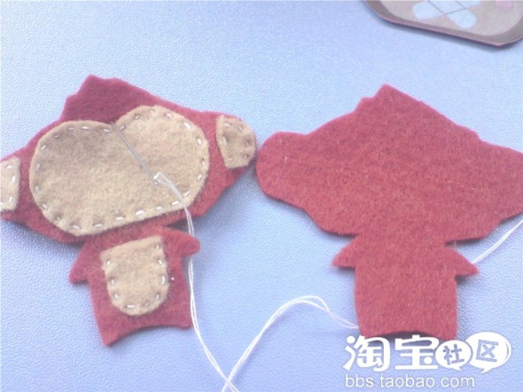 我上的是缝制到一半的猴子,脸型和耳朵都是图纸画了然后剪下来缝上去的