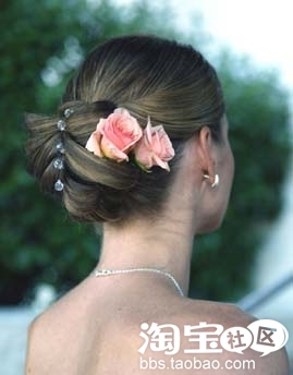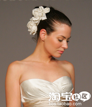 A.鲜/假花:最忌讳数量上太多。以前在中国参加婚礼,看到的新娘都是采取鲜花头纱造型,弄得满头都是五颜六色的鲜花。老外流行带白花,像是百合,白玫瑰等等。头发通常挽一个小髻侧戴一,两朵小白花。中国人还是多少有点不喜欢在喜庆的日子里戴白花,这种情况可以选用粉色的鲜花,淡粉或是深粉都不错,看你自己的喜好和婚纱的款式。