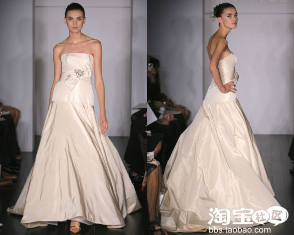 2.无肩:在中国越来越流行了,当然它比较考新娘的身材 a. 直线 b. 胸线