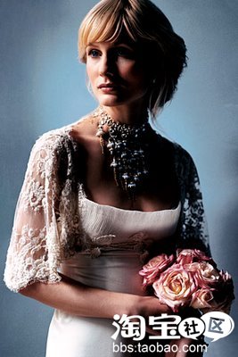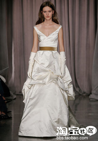 腰带: 近年来也开始流行于欧美,但不是太普遍,国内应该不多见。即将要结婚的姐妹们可以考虑一下。腰带可以自己额外找裁缝做。趁国内还不多见的时候,穿出来多有新意。等以后流行开了,就少了新鲜感。