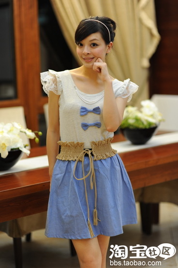 第1款:店主真人实拍* 蓝灰韩国蝴蝶结公主袖珍珠项链连衣裙~~ (不含腰封,需要的另加18元哦)