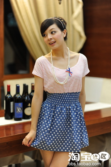 第2款:店主真人实拍* 红色横条蓝色点点珍珠项链蝴蝶结连衣裙~~