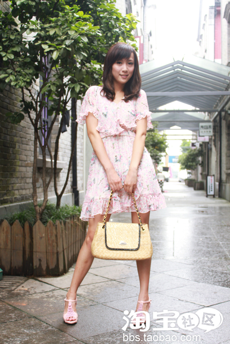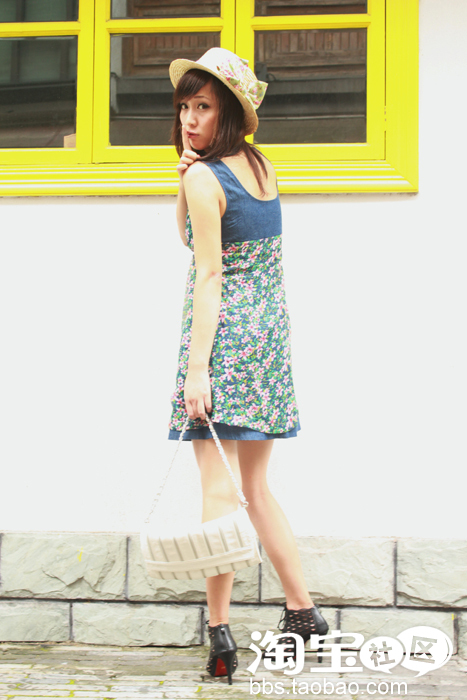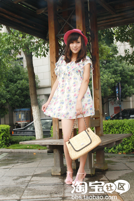 1、草编帽+连衣裙+高跟鞋+草编包,打造可爱田园公主~!