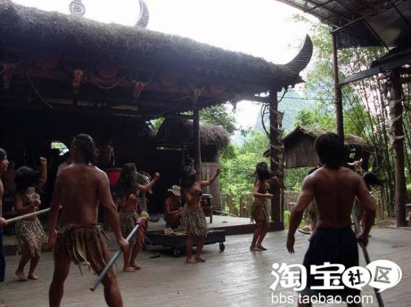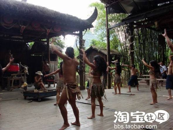 原始人类表演秀,男士称为阿布,女士称为阿丽,以黑、大肚为美