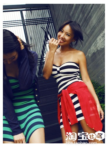 时尚点评:性感的款式来了,条纹抹胸紧身裙!如果你身材够辣,那就大胆的展现出来吧!与针织衫搭配,也是个好选择。