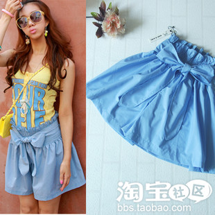 凉爽夏天~韩国腰部绑蝴蝶结宽松百搭裙裤