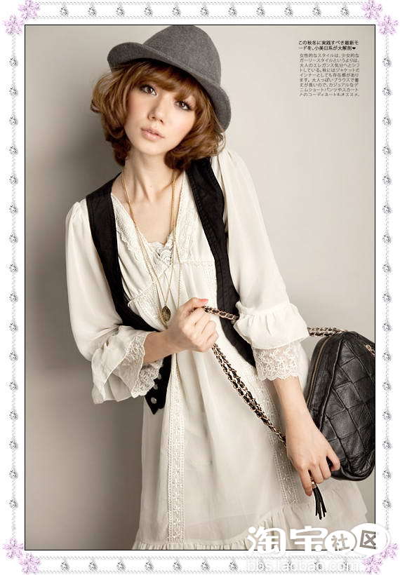 搭配点评:蕾丝花边,点缀了甜美的你。舒适柔软的面料。韩版高腰线设计。经典款型。可以帮助爱美的MM遮挡住小腹的赘肉。袖口也有蕾丝花边,抵挡不住的甜美。搭配一个机车包,让你的优雅度UP。小马甲帮你搭配男孩风的感觉,穿进办公室,肯定让人觉得非常新鲜哦!