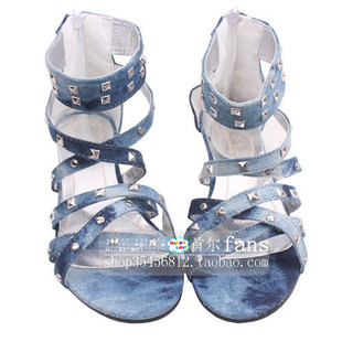 韩版正品牛仔铆钉凉鞋现货包邮哦~时尚达人的最爱。。。赶快来看看吧!