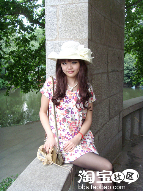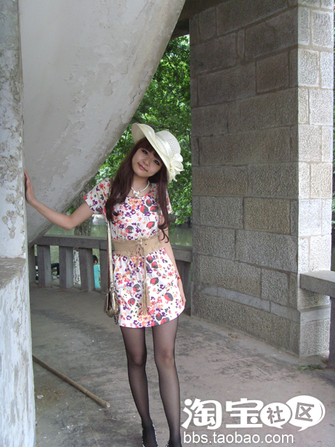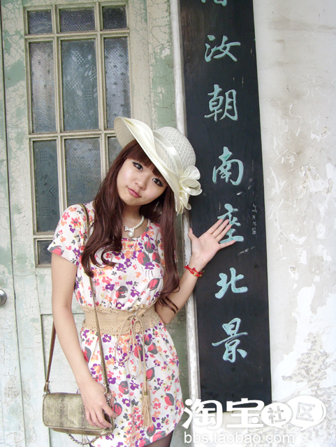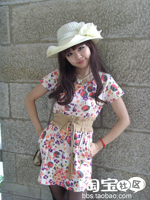 轻盈小碎花连衣裙 +奶白色草帽+流苏腰带,打造田园公主风