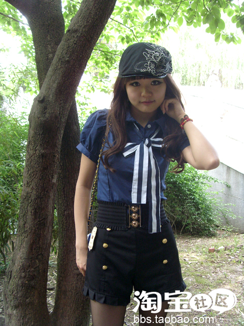 蝴蝶领结衬衣+荷叶边高腰短,打造学院派公主