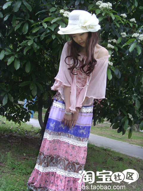 粉嫩嫩花边蝙蝠衫款+妩媚动人的粉紫色波西米亚长裙 ,打造异域风情的公主风