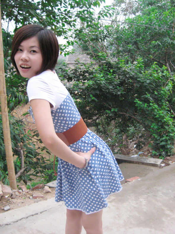 波点牛仔抹胸假两件连衣裙+宽系带百搭腰带=可爱公主