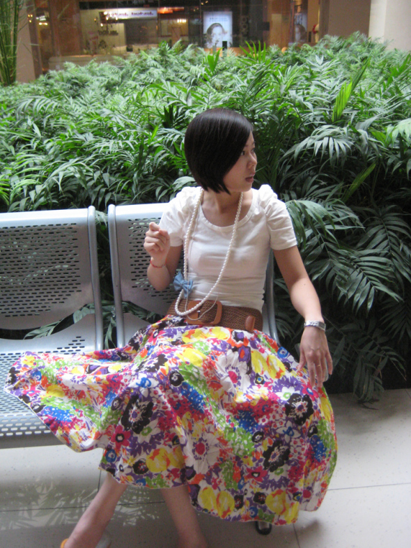 波西米亚两用裙+简单白T恤+简单蝴蝶串珠饰品=休闲民族风公主