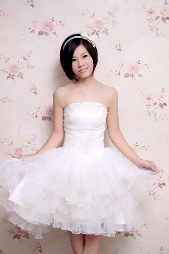 蝴蝶结和蛋糕裙都是甜美元素,再加上蕾丝纱的质地,穿上它你想不甜美都不行