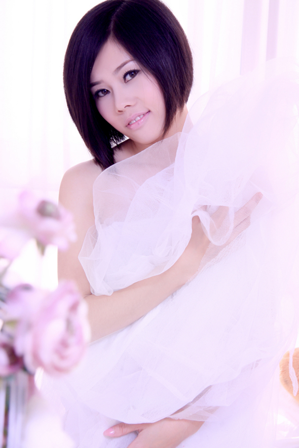 宽松蝙蝠袖毛线衣+超短热裤+百合背景+亲爱的小白=最最甜蜜公主