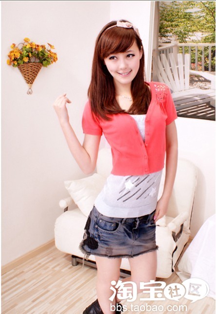 4. 韩版原单针织衫开衫小外套2色入:炎炎夏日,美女都会宅在家里或者office开着空调的清凉室内,冷气吹久了,偶感冰凉的宝贝玉体,披上这件薄款针织小外套,给自己增加一下体温,也增添时尚女性的无限美感哦!