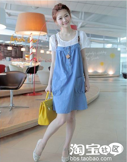 1. 韩版显瘦带兜牛仔裙休闲裙百搭半身裙:夏日薄款纯棉百搭T恤,有点小透,外搭吊带牛仔裙,单排扣左右大口袋设计,真的好休闲哦,和他一起喝下午茶,来到这年青白领常出入的coffee馆,有点害羞的她,平时穿衣很小心,外穿了这件牛仔吊带裙,T恤再清凉,也毫无顾忌了哦。