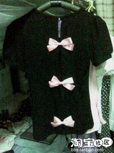 猫买了泡泡袖短袖打底衫◎辣椒款T恤,打底的那种,相信很多MM都有哈,不过猫买的黑色的,觉得不是很好看,正好看到《昕薇》上有那种可以露背的YY,所以灵机一动,改造开始~~(图图使用手机照片的,效果很是不好啦……亲们凑合凑合