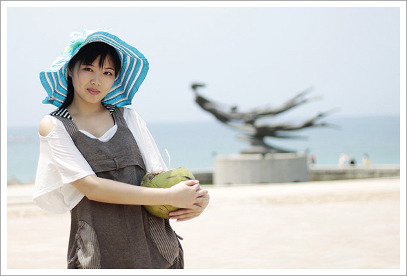 你亲吻海水,亲吻我的帽沿,亲吻我的裙裾,甚至,亲吻椰青的温度。