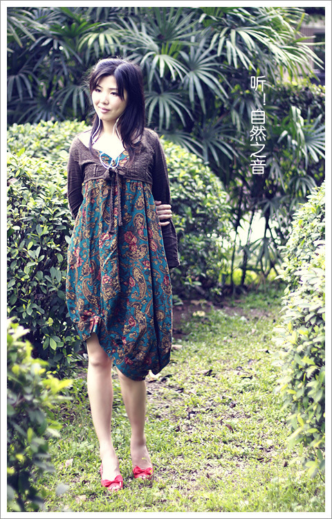 A、民族风不规则吊带裙+棉麻长袖小衫+红色高跟凉鞋