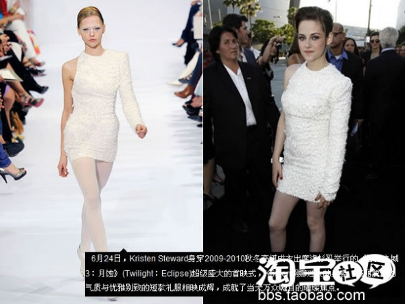 6月24日,Kristen Steward身穿2009-2010秋冬高级成衣出席洛杉矶举行的《暮光之城3:月蚀》(Twilight:Eclipse)超级盛大的首映式,Kristen婀娜迷人的身姿、清丽脱俗的气质与优雅别致的短款礼服相映成辉,成就了当天万众瞩目的璀璨焦点。