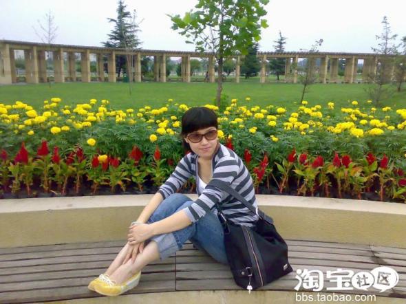 再来张职业装,(韩版胸前加饰白衬衣+黑色小西装+白色职业裤)还有我的包包!怎么样比杜拉拉不差吧: