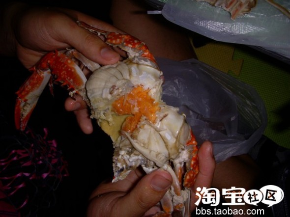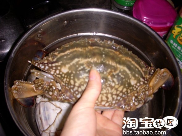 马上下锅了,看看被人煮过后的大螃蟹吧: