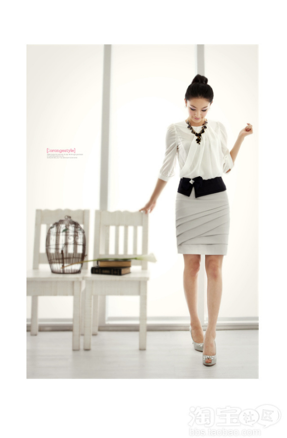 YY:韩版优雅SZ时尚短裙/OL职业A字裙套装(含衬衫和裙子)