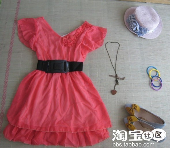 充满热情的颜色,飘逸的雪纺,金边的花边,收身的大腰带,散发出优雅的魅力。