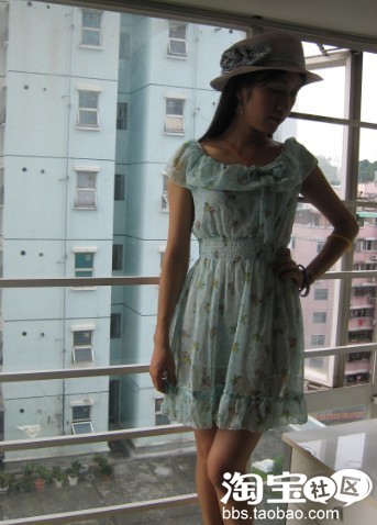 浅蓝色的雪纺小碎花裙,走在大街上,你肯定是惹人不断回头的那个让人过目不忘的漂亮MM.