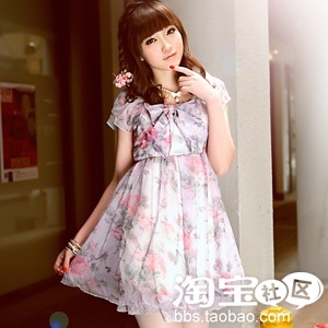 第六款 韩版可爱印花蝴蝶结雪纺连衣裙