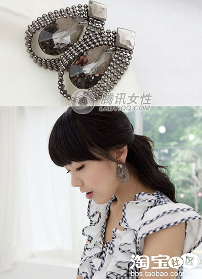 大块的方型水钻配合甜美的银色蝴蝶结,方正的水钻在飘逸的蝴蝶结巧妙的镶嵌下,显出极致的甜美闪亮。轻熟女们搭配淑女系服饰或是晚礼服。