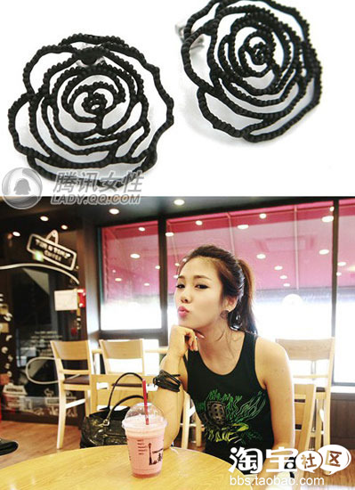 好喜欢那款黑色的镂空玫瑰花型的耳钉支持