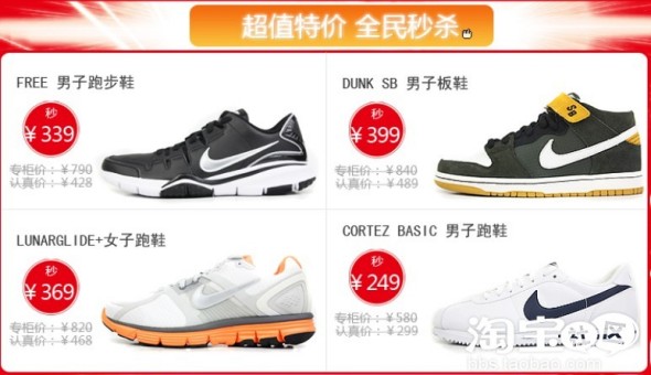 2、活动产品:多款耐克运动鞋(全部是专柜正品,质量保证)