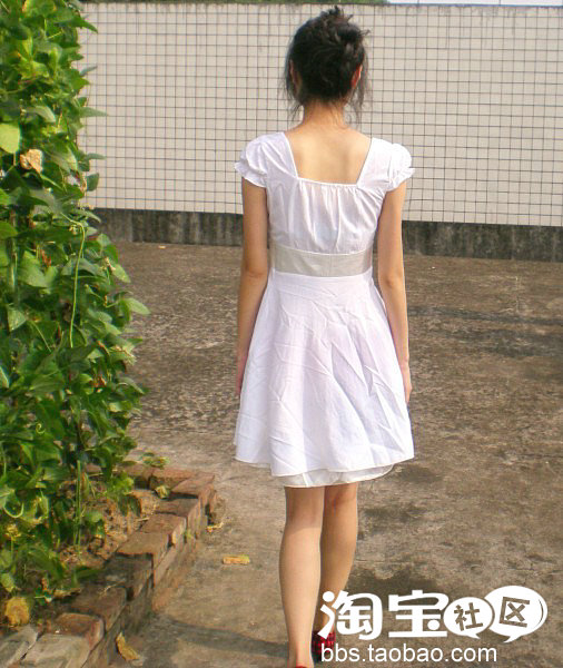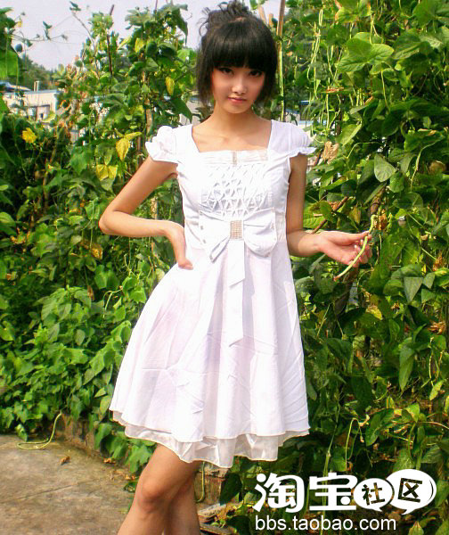 白色一直给人清纯的感觉,裙裙纯白色的颜色,加上上面的可爱蝴蝶结,整个人感觉可爱又清纯。
