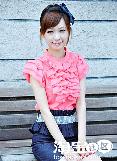 甜美的雪纺衫,大大的灯笼袖,既可锁住他人视线又可衬托您娇小的身型,给您的造型增添无穷魅力。一年中最美的夏日里,选择最适合自己的色彩,就是给生活注入了美妙的因子,让生活更具质量,让人生更加多彩多姿。雪纺的质地既有轻柔的飘逸感,又有着温柔而细腻的质感。搭配简单的紧身短裤或仔裤,就可洋溢青春的美丽。