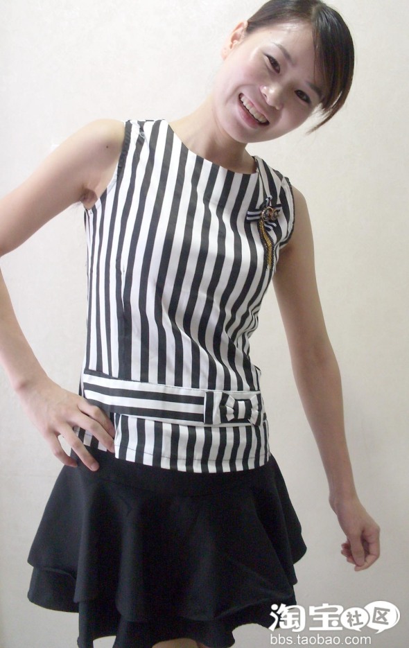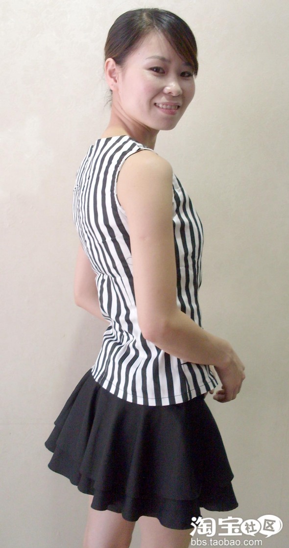 斑马条纹让人变得更加修长配上黑色裙裤,MM放心不怕走光