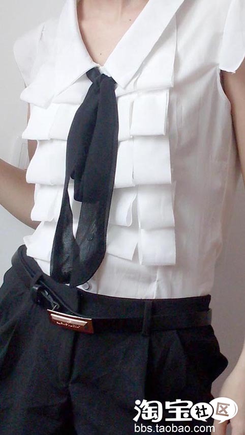 但是白衬衫+黑色布绳打成蝴蝶结