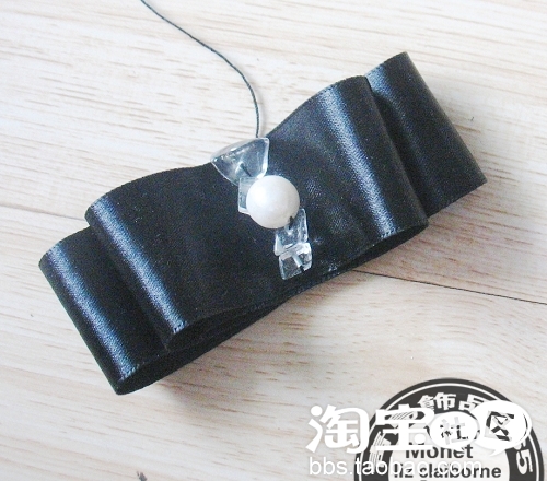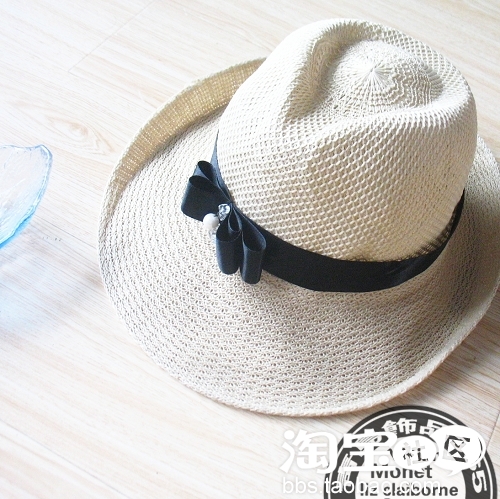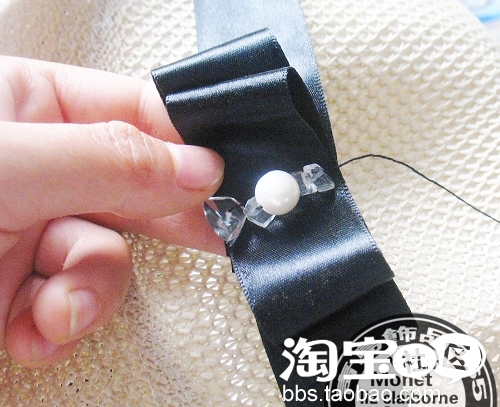 然后把丝带绕帽子一周,缝上蝴蝶结固定