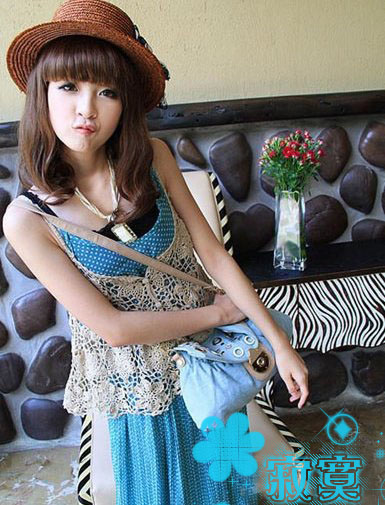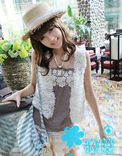 毛边的草编帽有着独特的夏威夷风情,用蕾丝勾勒出来的蕾丝花朵马甲可是爱美MM的心水之物,蕾丝短裙和蕾丝马甲也有着很好的上下呼应。