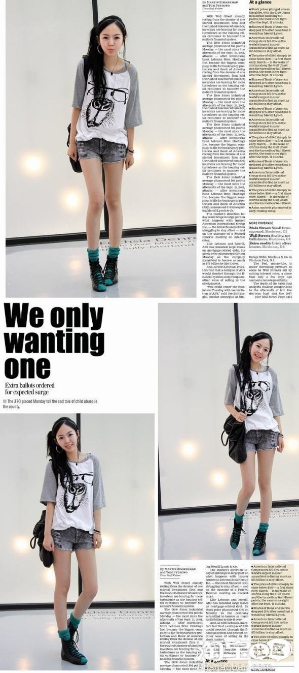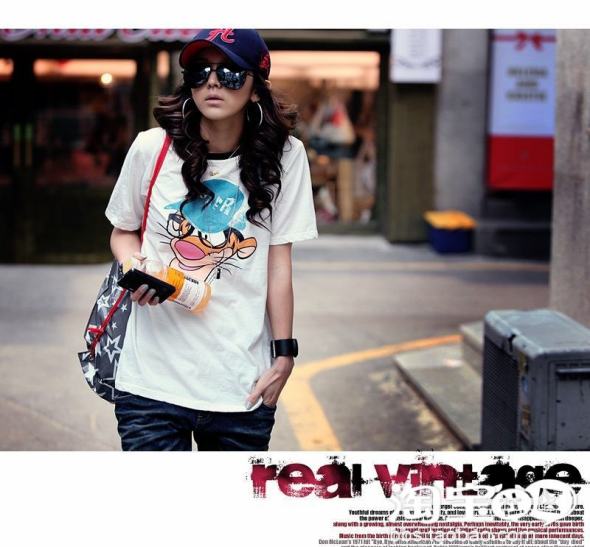 时尚解析:今年动物头像的Tee十分流行,成为很多明星追逐的单品,重点是动物图案要足够大,并且Tee的版型要足够宽松。但是假若你是一个“乖MM”,那么可以选择图案小些的,也一样吸引眼球。