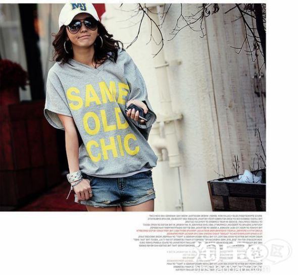 时尚解析:英文字母总会给Tee带来点时尚感。那些圆滑的字母线条搭配背心、棉Tee的叠穿,很有运动感,透着个性。对于这样的棉Tee,下身可以搭配今夏最流行的Legging、连体裤,或者是哈伦裤、垮裤等,这样街头风就很强劲了。