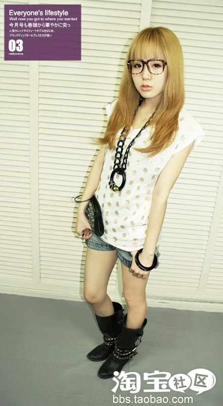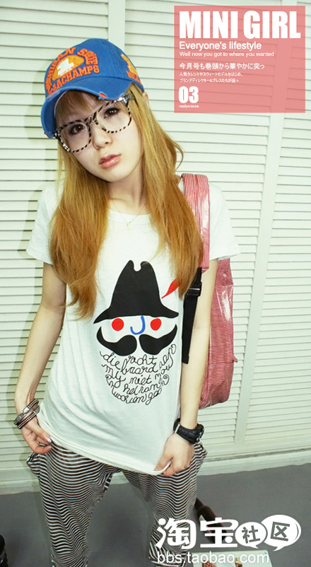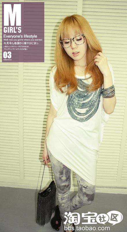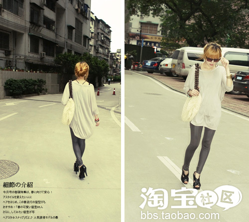 大大件的长T也是我的搭配法宝,因为不需要懊恼想太多 下装怎么配 开心我配个打底裤 不开心 我什么都不配 照样可以很时尚 因为衣服已经不单一了 所以不需要太多的装饰 反而更显他的特色!!!重点同样是饰品,因为没了饰品的衬托,再美丽的YY看来也都会回归平凡或直接变为有些MM眼里的睡衣哦--!