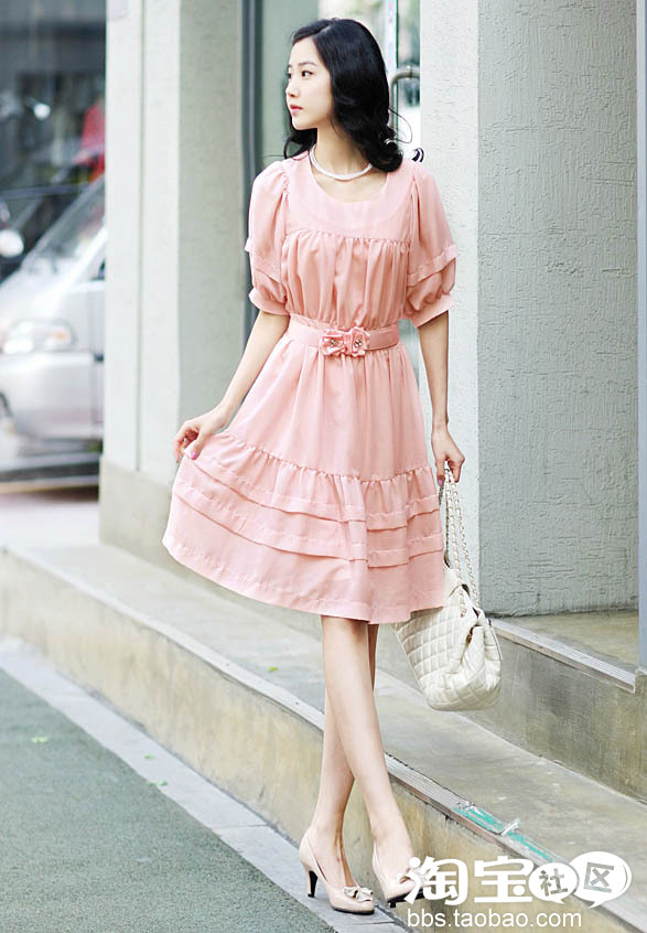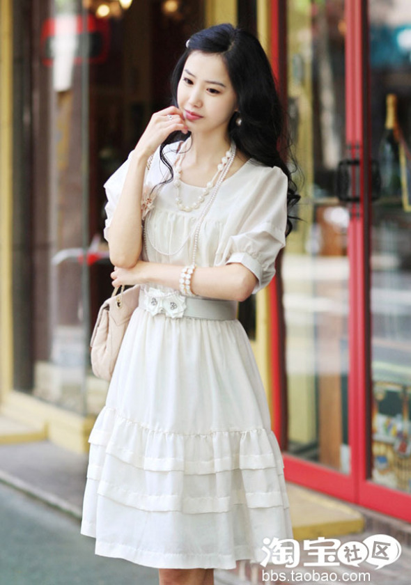 雪白色雪纺长裙的那份清爽气质,非常符合夏天的需要,给人一份清纯高雅的感觉;而红色蝴蝶结格子衫的那份优雅,正是夏日里很需要的呢!