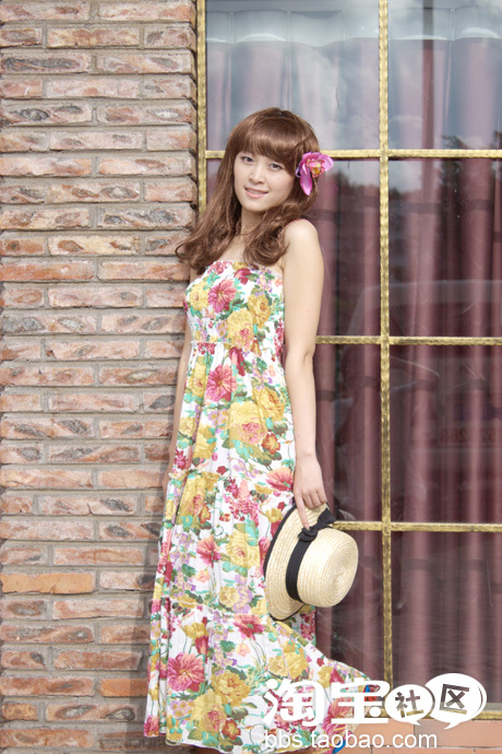 NO7:波西米亚风情花朵吊带长裙+草帽