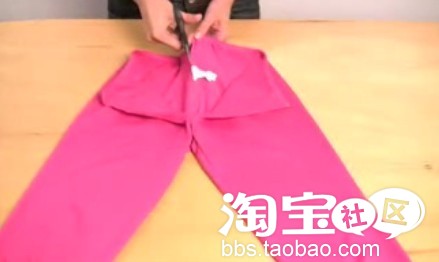 再将裤子按下面图案折成此效果,从最上面4/1处剪掉····