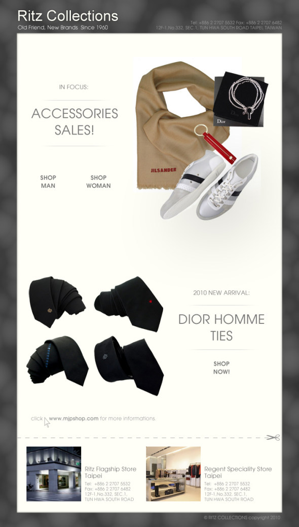 嗨嗨! 我网上发现一家店www.mjpshop.com 里面有很多Dior homme, JIL SANDER, CoSTUME NATIONAL的配件和衣服! 都是真品来的,速度去看看吧!很不错滴!~~~~~~~~~