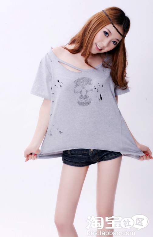 原单 欧美 时尚 破坏 漏洞 乞丐 骷髅 亮钻 T